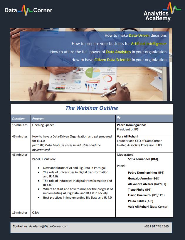 In the era of big data and industry 4.0, becoming analytics-driven is essential for the companies and organizations who want to keep their competitive advantages. It is quite important to know how to take the full advantage of Data Science towards generating actionable insights and making data driven decisions.